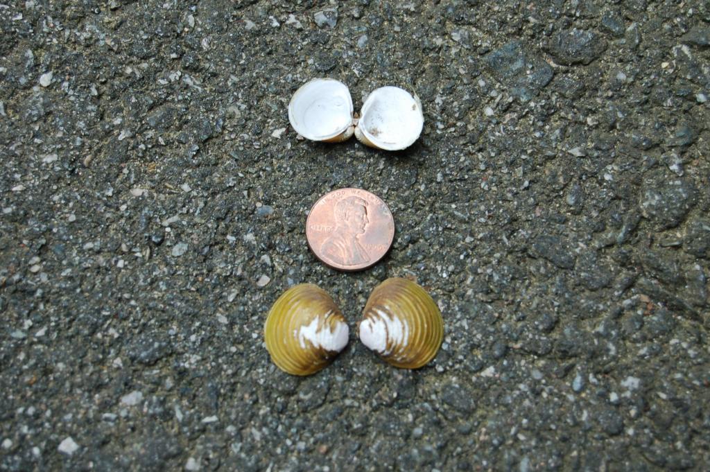 This is from the banks of the Ramapo River. They look just like clams, dime size to nickel size. I first noticed a few in 2011, now there seems to be a lot.