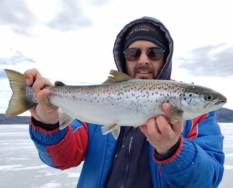 Like scott said the laker jigging was kind of slow so i set up some homemade jawjacker traps that i hoped blocked off the land locked salmon traveling route...took about all day but we intercepted them and the rig popped them perfectly! ended up breaking my PB twice with a 21 3/4" and a 24" I later caught something other than a fish...a flying tungsten jig in the finger as fonzi's fish spit it at the hole. all good though cause you don't need your pinky to put the death grip on! we landed that fish and i'm pretty sure it was his PB (don't have the picture though at the moment) He landed it on ultralight which is pretty awesome and the jig hook was mangled, but we're not sure if that was from the fish or it ripping through my finger hahaha. great times as usual...now back to your regularly scheduled open water programing...oh and "LIQUID WATER FISH DON'T COUNT!" :D:D:D https://s3.amazonaws.com/photos.fish...084070d449_800 https://s3.amazonaws.com/photos.fish...0604e93ca1_800 https://s3.amazonaws.com/photos.fish...0604c68611_800 https://s3.amazonaws.com/photos.fish...0604b1e345_800 https://s3.amazonaws.com/photos.fish...0840859d55_800 https://s3.amazonaws.com/photos.fish...0604a803c9_800 |