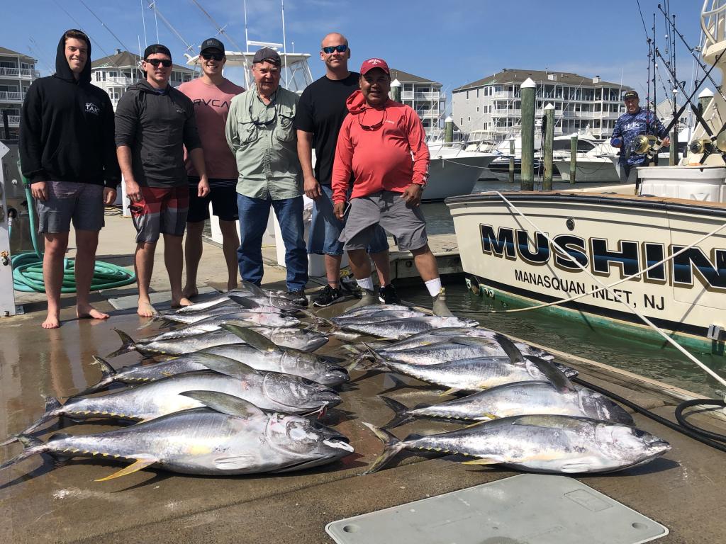 Our most recent trip had Pat, Joe, Rob, Jimmy, Steve, and Billy limited out with YFT to 65# and more that were released unharmed, and on our way home from day trip by 11 am. Multiple hookups were the rule! We had tuna blasting baits as they were being set in spread! I hooked two myself reeling the long rigger spreader bars! The action is hot! Don’t wait to get out. Call or text Capt. Alan 609-731-3742 to book. Attachment 134482 |