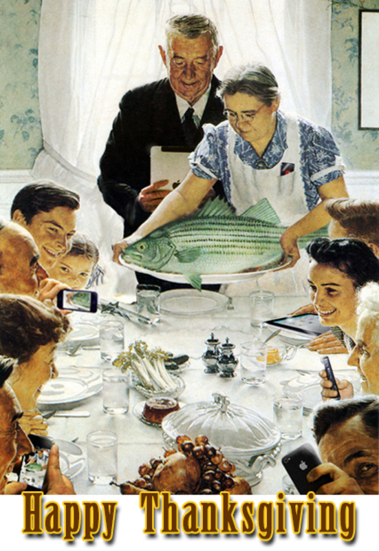 Happy Thanksgiving to everyone here. Eddie I understand in addition to the traditional food served, is having a spread of blackfish, walleye, carp, channel catfish, yellow perch and possibly even deep fried flathead. Hottest ticket in town!