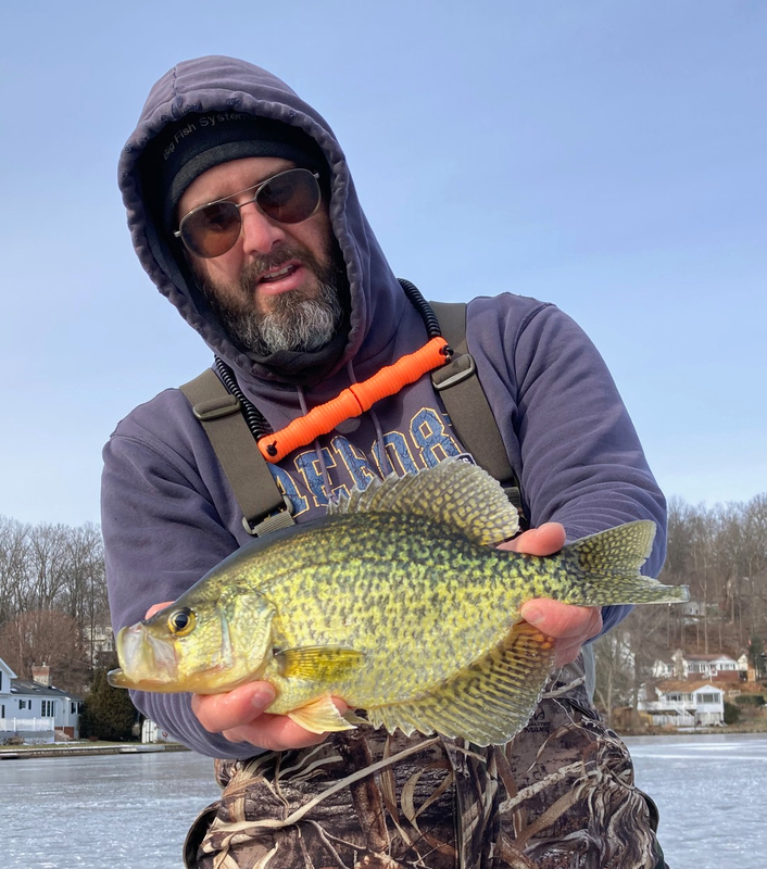 ice fished the last 3 days, headed out late morning saturday with squatch and the action was so insane it took us hours to get our 4 tipups each in the water! even after it slowed down enough to get them all in without flags popping it was another hour or too before i could even start jigging! Once we started jigging, the jumbo perch were ready to play too. Great day of action with mostly small to avg slime darts, but plenty of jumbo perch and a nice bass and slab crappie as well.