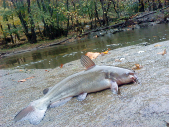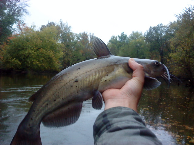 no luck with the fall stocking on sunday. today i went to a place where i have better odds of getting something good. fished off a huge bolder in the millstone for 2 hours. the dropping temps and rainy weather had the cats active and everything else away. caught 4 channels (including my first ever rare albino :) ) and a white cat. best luck i had all year in that river :D . pics below: