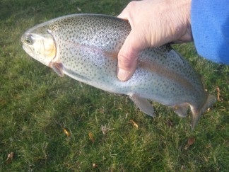 After getting nothing at Allenhurst surf, I changed gears and headed to Spring Lake to try for some of the Winter stocking of trout....got nothing on any lure, but managed 2 nice meaty fish, one on green Gulp Corn and the other on pink powerbait.... both fish had my ultralites bending in half with 4 lb test pulling drag..... luckily both fish were lip hooked and was able to quickly release unharmed.... left with a Smile :)About 3 people fishing the whole lake!
