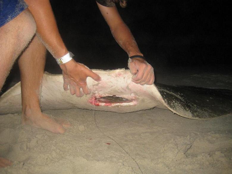 I can't believe my surf set-up handled it.. I actually had to have my brother pour fresh water on my reel, as the spool was getting HOT quick. Shimano Baitrunners (old model) never let me down and this just proves what they can handle. Also I didn't think my surf rod had that much backbone! And yeah I've caught cow-nose before, but they feel like a snapper compared to this thing!!!