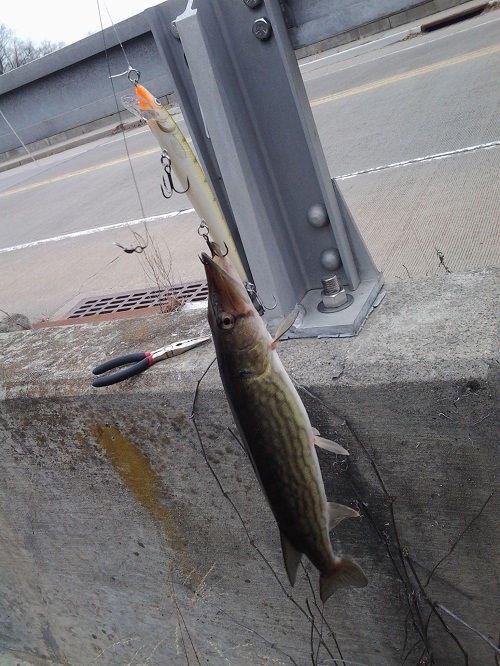 Went out for an hour this morning, tossing a perch colored husky jerk. Most the lake was starting to ice over but my usual spot was clear and fishable. Picked up 2 picks, one small shown below, the other average. One other guy fishing with live bait but had no luck. If you can find good water, jerk baits are the way to go. Hoping for Mr. Pike next time...:)