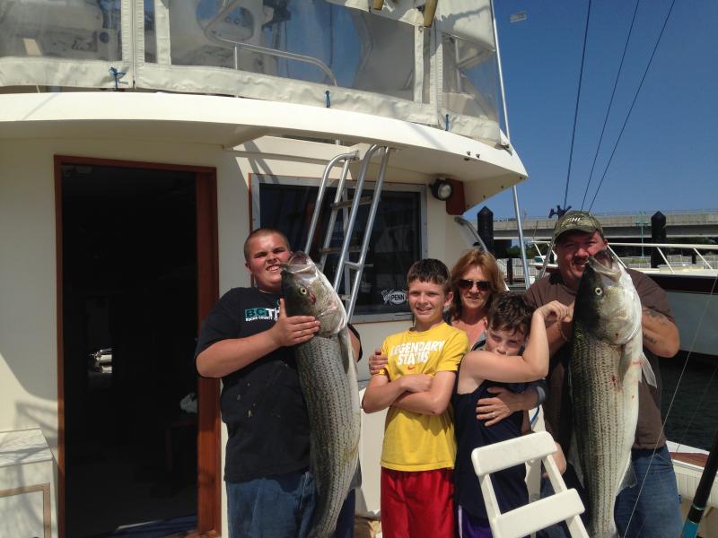 We had Tom Warner and his Alice along with his grandkids Ryan, Anthony and J.J. out for a day of fishing. We left the dock at 7:30 a.m. and headed North and made a quick stop where we caught several fluke along with some sandsharks. We made several more stops along the beach with a couple of keeper Fluke. We tried to change it up and headed for deeper water with no luck. Headed back to the beach, and had the best drift of the day -- a lot of action with short fish and the sandsharks were keeping the boys busy. Tom wanted to catch a Big Bass so we went south and took out the trolling sticks. We hook up three Bass, landing two. A great day with great people and weather. :):):):)