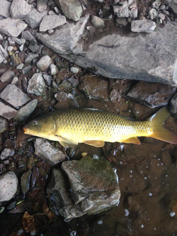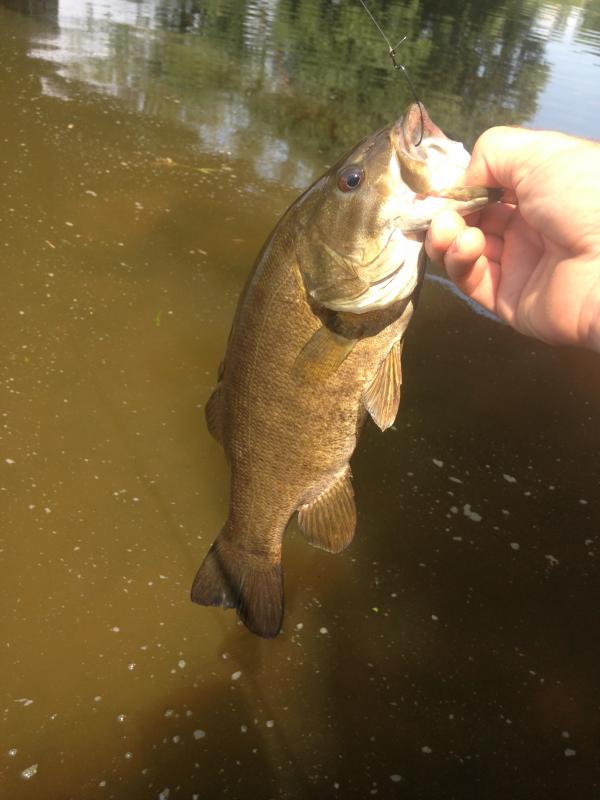 Hopped around some of my favorite honey holes in hopes of a smallmouth slamfest. Fishing wasn't quite what i thought it would be due to cooler, more stained water than what i expected for this time of year. Used many different baits with no luck but the 3" senko always prevails :D. Ended the day with 8 bass to 14", a 7lb carp and rainbow trout.