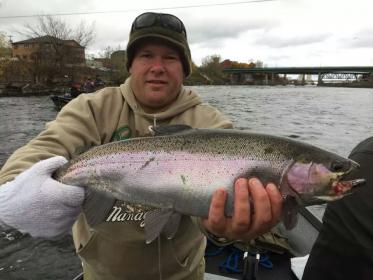 Caught a drift boat on the oswego river this morning for some steelhead action. God I love that river, so many fish it almost feels like a canned hunt. Landed 2 king salmon (mouth hooked) although one was ratty looking and the other was a jack. 3 nice rainbows. My buddy landed a king a brown and a mix of steelhead and rainbows. We each missed a few and no real monsters but it's always a nice trip up there. Weather was typical, rain sleet mix. I don't have pics but they are on Facebook if anyone wants to pm I'll guide you to the boat we used. He's not a sponsor boat for obvious reasons so that's why I'm not mentioning him by name.