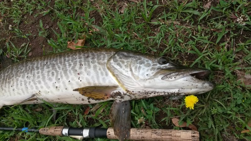 Haven't posted in while but have been fishing after a banner spring with the eye's and smallies I've switched gears to catfishing and muskie fishing.The cats have been flatheads up to 10+lbs and channels in the 5-8 range.Also have been hooking into quite a few tigers but landing none until today.Fished from 10-12 landing one nice channel and hooking 2 tigers landing one that went 36".Its not bad when you travel 20min from your house and catch some real monsters in rivers that people pass everyday.