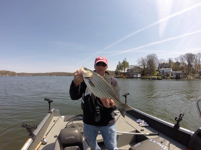 Windy day on the big lake but found a lot of fish on the deep points. Boat control was an issue today and couldn't stay on them. When I could I hooked up on every pass. All my fish caught were suspended 15-20 feet off bottom in 40+feet of water. Here are two of my largest...