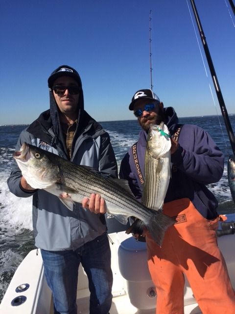 Headed out this morning with Steve and Ryan for stripers. Came across a bunch of life with peanuts getting chased. Managed to land a few fish to 25" on shads and poppers. Bounced around a few areas with a few shorts taking artificials. Got a call and put the mojos in. Wound up boxing 1 keeper at 31" while dropping a few other. One more stop for the day produced a few fish to 27" taking one bonus fish for the table. Ended the day with our one legal keeper at 31" and around a dozen fish between 22 - 27".