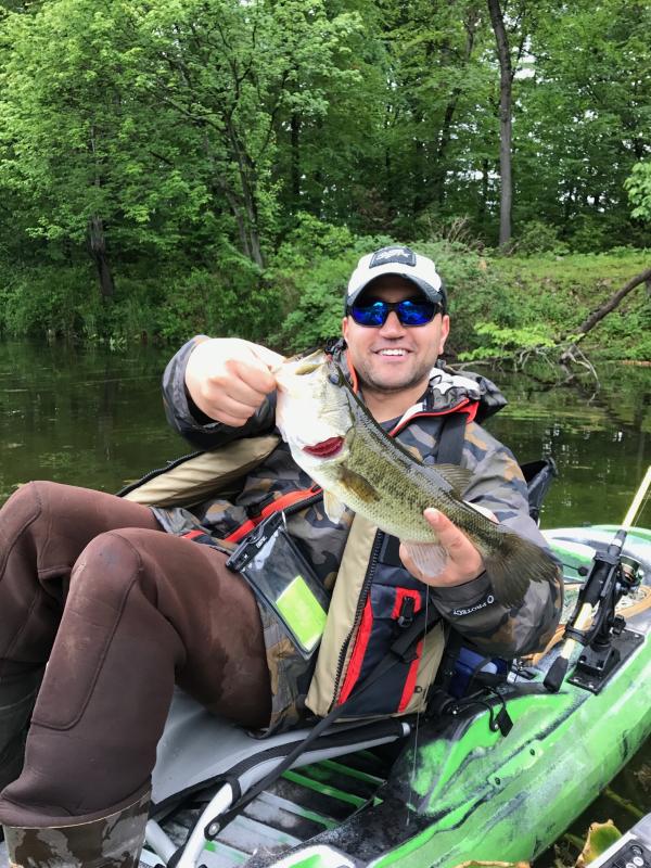 We went out Sunday for about 5 hours. The weather sucked (cold, humid, rainy) so we figured the bite would be slow… and it was. We did a combination of shore and Kayak. No color or bait in particular was better than the other. Red, white, silver, purple, perch plastics all seemed to work Ok. Keitechs, gulp minnows, gulp crawlers.. etc. I think the two colors that worked the best were a translucent pumpkin and a dark red. I can report the weeds are now fully grown and time to bust out the heavier weedless jigs.