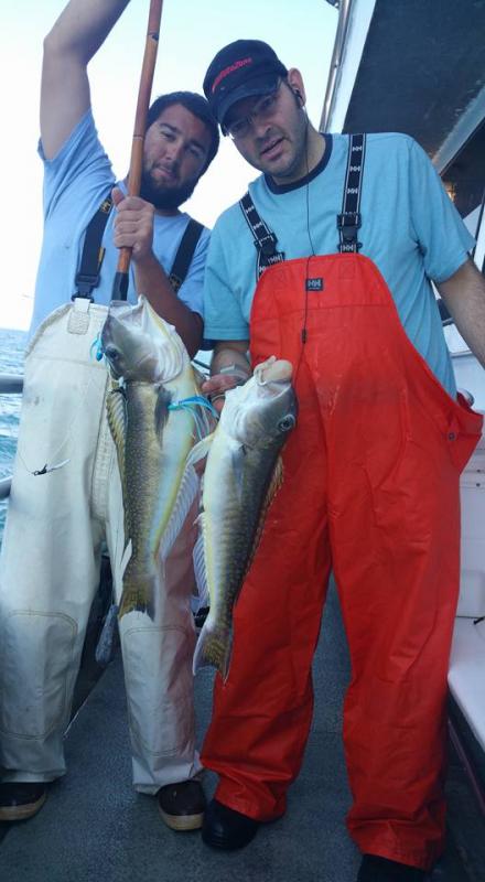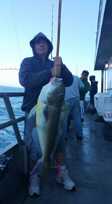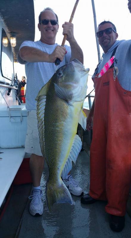 -Tilefish Trip Report- Our Sunday night tile fish trip was a good one! We had a good catch of mostly medium to jumbo golden tile fish with a number of them from 15 to 33 pounds. Fishing was good early in the day, it slowed down a little bit mid-day, and then picked up again later in the day. We had several double headers and good action for everyone. We also hooked up, what was most likely a large tuna, that almost spooled the reel. We turned it for a little bit but, then the line broke when it crossed a lobster pot. It was on electric reel which is not the best for fighting tuna. A large blue shark also paid us a visit and stole a couple of Tilefish. The largest fish of the trip was a 34 pound tile fish caught by Jimmy Kornias from Hopelawn NJ with a 34lb tilefish. His friend Gus had the hot hand catching several several large tile fish and a double header. ( the photos of Gus are different fish not the same one over and over) Paul McMillan from Howell New Jersey caught a 29 and a half pounder on a jig. He also caught a double header on a single jig which had a hook on the bottom and an assist hook on the top, and several other fish including a white hake. Particularly effective were a couple of Jigs made by the Old Man's tackle box. We have never had many anglers jig for tilefish before but, I was impressed with the way they worked, and they definitely out fished baited hooks. The jigs were fished with the small piece of strip bait on them and with 30 pound test braid. All all that was required was a light a very light bouncing of the jig on the bottom to entice a bite. (we should have Jigs available on our next trip and, also at www.boganstackle.com very soon) There is space available on upcoming trips. Our next Tilefish trip sails10 p.m. Sunday June 18th. We have Tilefish trips scheduled throughout the summer leaving on Sunday's at 10PM The Big Jamaica will sail for Blue fish 7:30 a.m. everyday except Monday. Night blue fish trip will sail Friday and Saturday night this week at 7:30PM Family Fun afternoon fishing trips will begin in July saying from 4:30PM to 8:30PM We also have Fishing and Fireworks trips on Thursday nights leaving 5 p.m. including July 4th, starting the 4th of July. For further information call 732-528-5014 Attachment 111378Attachment 111379Attachment 111380Attachment 111381Attachment 111382Attachment 111383 |