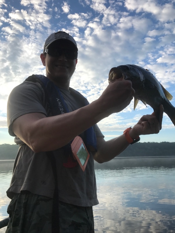 We hit the sheds early Saturday morning. Crazy how we pulled in at 5:30am and we were already the 4rth boat to launch. The Oak is as full as I’ve ever seen. The water line was even higher than some of the tree trunks in some sports. Beautiful day to be out and you would think the bite would be on after the previous days rains. WRONG! It was hard to get a bite, yet alone land a fish. We called it quits around 11:30 and the tally was 6 fish total for 3 guys casting every size/color/model of Keitech imaginable. One nice Smallie at 2.3lbs on the scale in the early morning. One 2lb Larry a few feet from the launch, a 20inch pickerel, two Perch and an aggressive and chunky gill in between. (side joke, my buddy almost called for the Net for this fatty gill… ahahaha). Wonder when the next time we make it out will be. We have newborns arriving within the next couple of day(s).