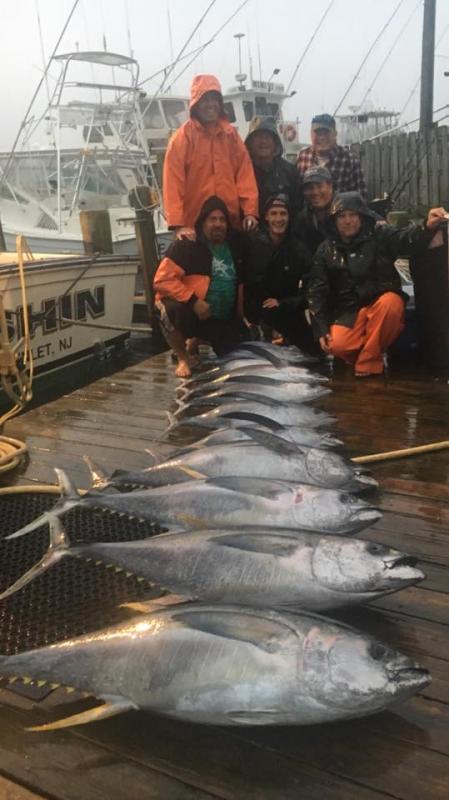 MUSHIN - We fished our Day 2 of the MRMTC Offshore Open on 9/2 by doing a quick day troll after the week of 5-6 days of unfishable weather. Finding good signs in a local canyon, we deployed the trolling spread and had a consistent pick through the day, starting off with quality XL yellowfin between 65 to 70#, then adding longfin later in the day. Having to get back to the scales to weigh in, we left the longfin biting. Purple/black plastics again did the trick. Water temp has stabilized to temps that tuna like (not marlin temps), and water quality was good. There was a good spread of fish, so conditions are looking good for the Fall season!Attachment 116215