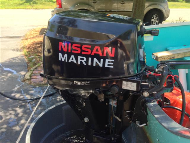 2005 8HP Nissan Four Stroke Outboard, Short shaft, Tiller, Manual Start. Comes with 2 gallon gas tank