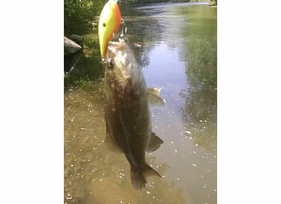 Hit the South Branch on 6/8/2015 in some of my usual spots. The river was perfectly stained and with the prefrontal conditions the river was perfect. Hit the bridge by my house at noon and hooked up almost immediately on a smallie I caught last year. It weighed 3.11 last year and now 3.3 figuring she was spawned out. Then was going to go to a retention pond for largemouth but upon inspection the wind shifted the muck cheese looking stuff so I couldn't punch and frog in the area I wanted to so I went back to the river. Hit another spot north on the South Branch that is a lot deeper. Immediately started throwing cranks and spinnerbaits. There is nothing like bouncing the bottom with a crankbait and a smallmouth just slams it. Through a bunch of stuff like shakey head worms, jigs, and a few swimbaits but the crankbait was the ticket. I thought the shad patterns were the right move but one hit a old Fat Rap in a craw pattern. I used to fish the same spot after school years ago in high school and would use shiners and catch lots there. Those river smallies are opportunistic feeders eating a lot of stuff that comes down in the current.