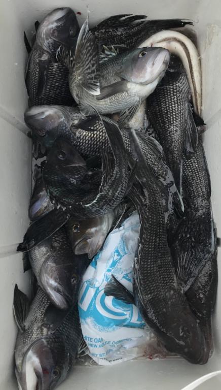 Today aboard the Down Deep Bull, we ran another 5:30 am Seabass trip with a nice group of new and returning guys. Drop, stick, reel, repeat fishing filled the boat quick with everything the crew came for along with Ling to top off the bags of beautiful filets. Nothing short of outstanding fishing in the quality department and quantity. This has been one of the most productive spring fisheries all around. Get out, load up book now, we’re on em all ! Thanks everyone for sailing with us, and all others who continue to book their trips going forward at a rapid pace. Don’t miss the next open boat trips and fish in comfort like a gentleman and get right on em -