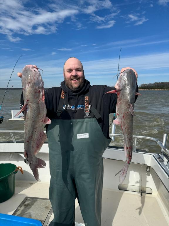 Home safe & sound from our trip with Miss Susie Charters .Big congrats to Devon aka species slayer who landed species #60 ( blue cat) & #61 (white cat) & was hi-hook on the blue cats. Didn't get any giants with the biggest fish pushing 10lbs or so but lots of #bites to bad me & Vinnie suck 😄 we ended up killing 35 which the crew said is slow but par for us we had high winds, cold front & poop conditions. Also had bald eagles scooping racks up all day even freedom falcons want a free meal 😄
