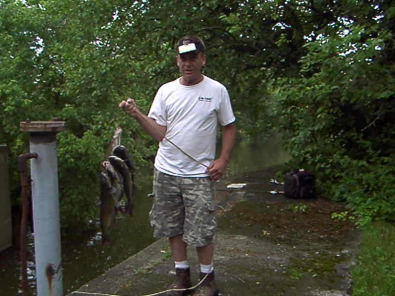 Went down to the river to do a few throws this afternoon and ran across a guy fishing the D&R canal, he was doing a number on the channels using chicken livers. I got to the falls and there was nobody there and as I walked up to the water I spooked a school of large carp. They were feeding next to the edge, about 15 of them in the 10 to 15lb. class. I waded into the river and fished for a bit till the thunder came and the skies opened up. |