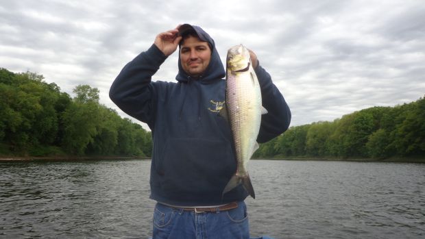 I took a drift boat trip on the Delaware River today. I caught 9 American shad (2-6 lbs.), 4 walleye (12-17"), 8 smallmouth bass (8-14") and 3 fallfish (8").I caught fish on everything- jigs, spoons, darts, soft plastics, inline spinners. I even caught a walleye and smallie on a live lamprey that was taken off a shad.