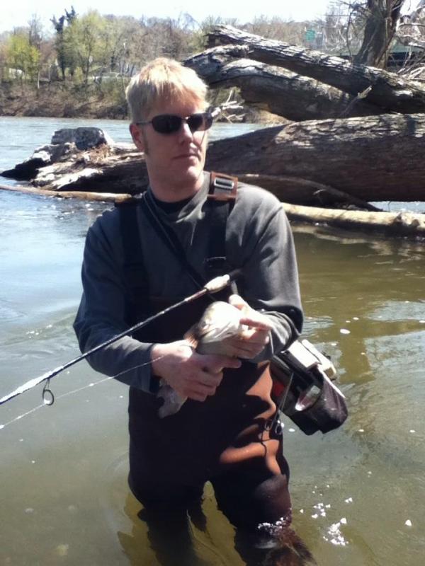 I met my brother out by his place to see if we could get some action on the Delaware in the Easton area. Started out by the mouth of the Bushkill, and my brother tags a 17" brookie on a spinnerbait. Not an in-line spinner, but a safety-pin style, double-willowleaf bladed spinnerbait. We went on to fish a couple of spots just north of there, but sadly that would be our only fish for the day. Water was still a few feet high and off-color, and the current was really ripping in that part of the river.
