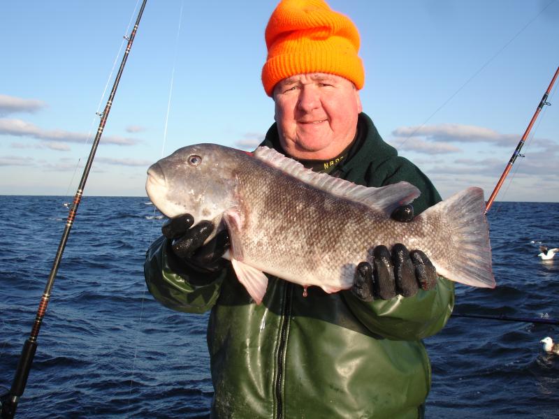 Today we had an open boat Tog trip and had a pick throughout the day with shots of fish coming up. We made a another drop in the afternoon on a wreck and the fish were better quality there. Everyone got their limit except one angler. Joe was HH today with 9 keepers (orl) and Mike had the big fish around 6 lbs, no big ones for us today.