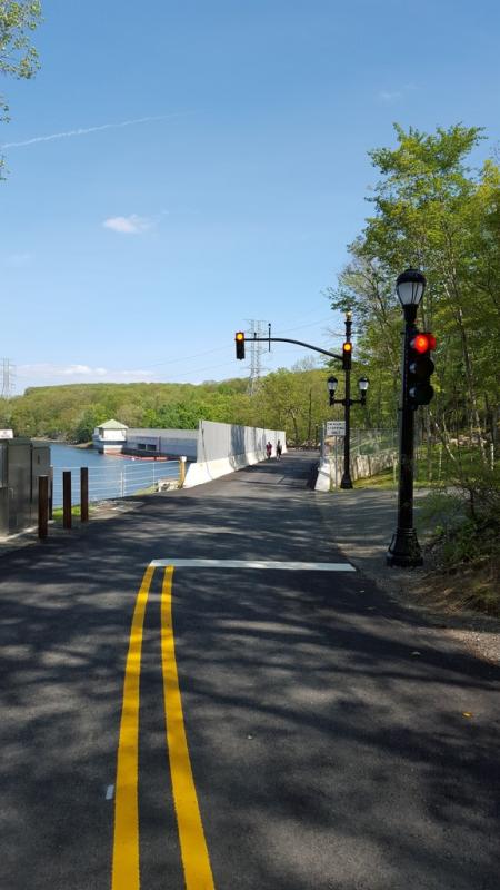 The construction on the dam appears completely finished with almost all of the equipment gone, no workers present and nothing looking unfinished. The section of Split Rock road over the dam is still closed. Most likely they are still finishing the inspections, etc. The water is still down but I was able to take several accurate measurements on the dam and water level. When the reservoir fills back up, the normal full pool water level will be the same as the old full level. Currently, the water is down just over 4 feet from normal full. In one picture you can clearly see the splliway in the center of the dam which represents where water will flow out at normal full pool. Since there is a minimum required flow that must feed the outlet stream I could not tell if they are still maintaining a lowered level or have begun to let the reservoir refill as it will take some time. There are now metered traffic lights, similar to the infamous 5 minute light, for the roadway over the dam. In the pics, you can also see the new official use only boat ramp next to the dam. I also was told by what I consider a reputable source that the state is not going forward with expanding the public access and boat launch due to finding American indian artifacts in the area. I took all photos except for the aerial pic which is from the engineers website.