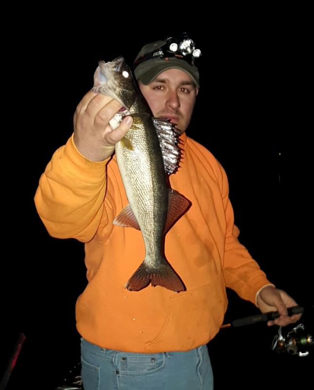 Hit a handful of spots and pretty much got fish or strikes everywhere we went. I stuck 8 eyes up to 20ish inches. Mikey had a few but missed some short strikes. He also nailed one of the biggest yellow perch ive ever seen--easily 15-15.5". Looked like it swallowed a jumbo chicken egg! Some were demolishing the baits, others were pecking. Switch hit around 2 am and we called a quits shortly after. Prob had 10 or 11 fish between us. Good to get my 1st eyes of the yr. Thanks for the invite mikey! Lake was a sheet of glass, too. Not even a farts worth of breeze. A bit o fish porn for ya... catch em up!