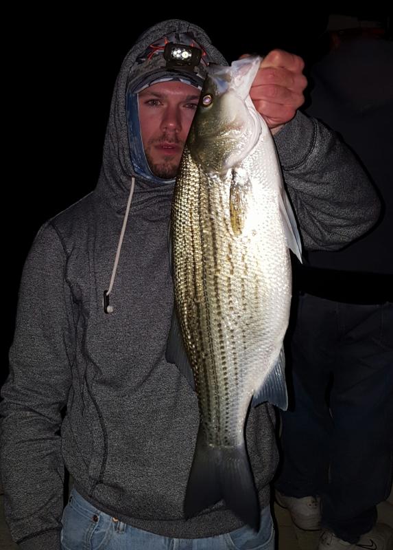 Doubled back to another area and the action was turned up significantly. With no other boats around we started to find more consistent action--strikes, missed hook ups, dropped fish and multiple linesiders landed on the boat. When all was said and done we had a decent night with 12 or 13 hybrids and a smallie brought to net and prob just as many strikes or dropped fish.