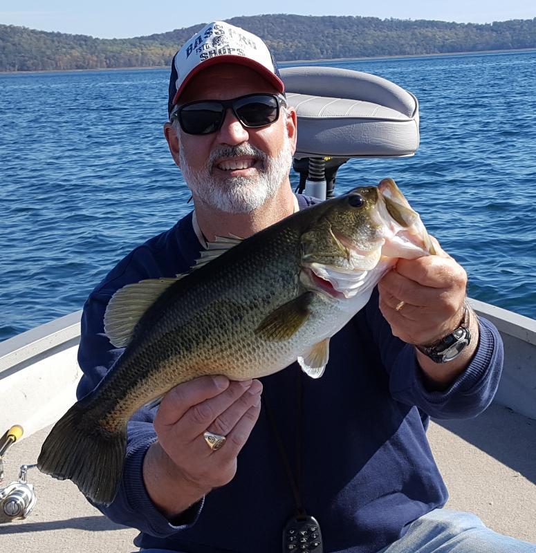 Got a chance to get out on the boat Saturday (10/28) with the wife for a few hours from 10 to about 2:30. Decided to hit RV since it is only 15 minutes from the house and try that trout thing. So I suck at the trout thing and switched to looking for some bass. Threw a bunch of stuff and finally found some success with a 10 inch watermelon green Zoom ole monster t rigged with a 3/8 oz bullet weight in 20 feet of water around a large weed bed. Ended up with three on the day so it wasn't a bust. RV can be tough for them LM so I was satisfied and one was a nice fatty...perfect health and color coming up out of that clear water. Looked like a painting. Pretty fish. At least it was only windy from 10 to 2:30...man that place can be bumpy. Love my 80lb thrust Terrova with auto pilot on days like that...Thanks again to WayneDayne for selling me that beauty. And pulling out with waves crashing the beach is always fun. It was a beautiful day though so can't really complain. The wife got the skunk so it was a quiet ride home. Thankfully the wine rack is well stocked so she got over it. Pic of the biggest one to prove it...2 pics of the same fish just to be clear.