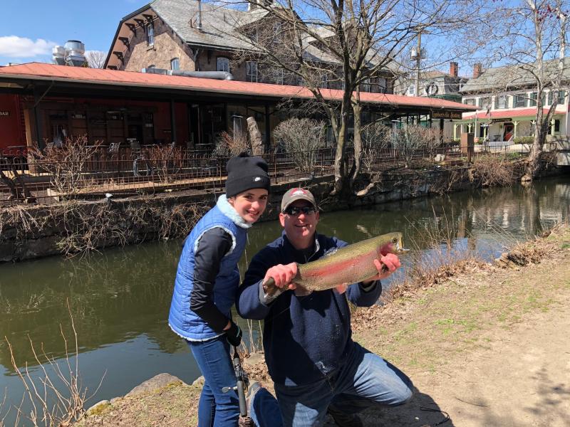 My kids love to fish so off my daughter and I went around lunch time for an hour or so to try for our first trout of the year at the canal in Lambertville. We fish this spot all the time so it is her favorite little place. She absolutely loves it and enjoys being outside with dad for any kind of fishing. Fished for about 20 minutes with no bites and then finally drifted a salmon egg past one that was hungry. Handed the rod off to her and let her fight the fish till she brought him in, 12 inches or so, she was super excited. She then casted on her own and landed another one shortly after, about the same size as the first. As soon as she says, dad we need one more for dinner and then we can throw the rest back I get slammed! Rod is bent over and line is peeling, automatically knew I had a good one on. She asks me if I hooked a truck going past the bridge and laughs and then immediately this monster comes launching out of the water at her. We are both shell shocked at the size of this fish! The battle ensued on the ultra light pole and all I can think about is that line snapping and then realizing that if I am lucky enough to get this thing close enough to pull out of the water, how the hell will I get it 4 feet up the canal wall. Meanwhile a decent crowd is gathering watching this unfold for 10 minutes or so with multiple jumps. We went from one bridge to another two or three times and finally got this fish tired enough to even attempt to get it on ground. My daughter took the rod and fought the fish while I used my stream net to scoop it up. We tried this 3-4 times with me laying on the ground just barely close enough to get it close enough in the water to land this baby. Mission accomplished! Fish of a lifetime 23.5 inches long, 15.1 inch girth. Any ideas on what it weighs? Didn't have a scale. We were able to make a memory that will last forever and so happy I had to chance to catch a fish like this with her.