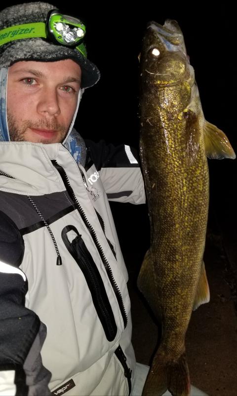 Trying to get back into the swing of nighttime things so I ventured out on Friday. Hit a few spots but managed just one fish. She was a nice one, though. Shitty tape job but she's around 26 or so. She fought strong in the cold water, peeling line a few times as I coaxed her out from a few faster moving areas. Felt good to stick a healthy walleye to start the spring season.