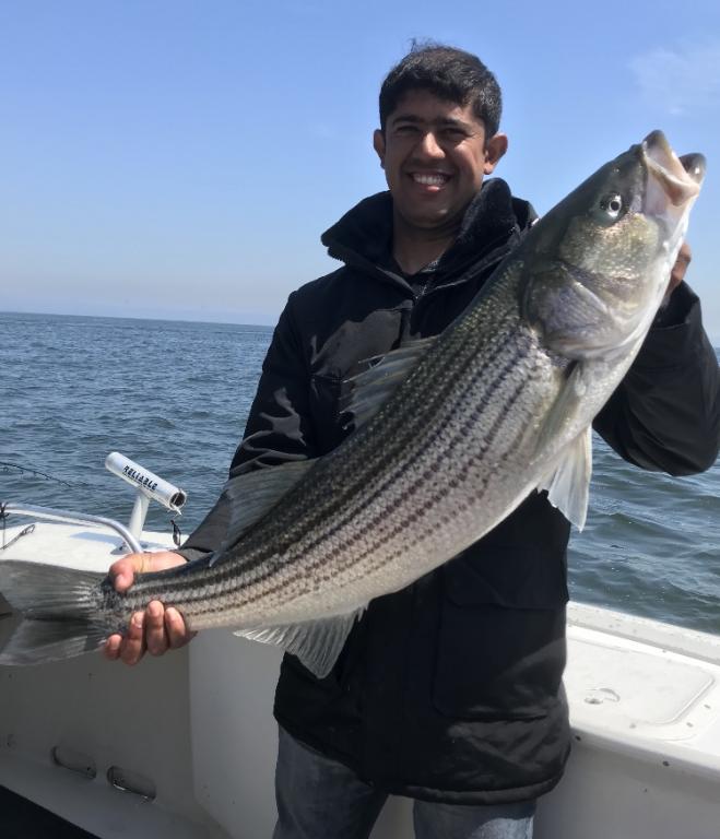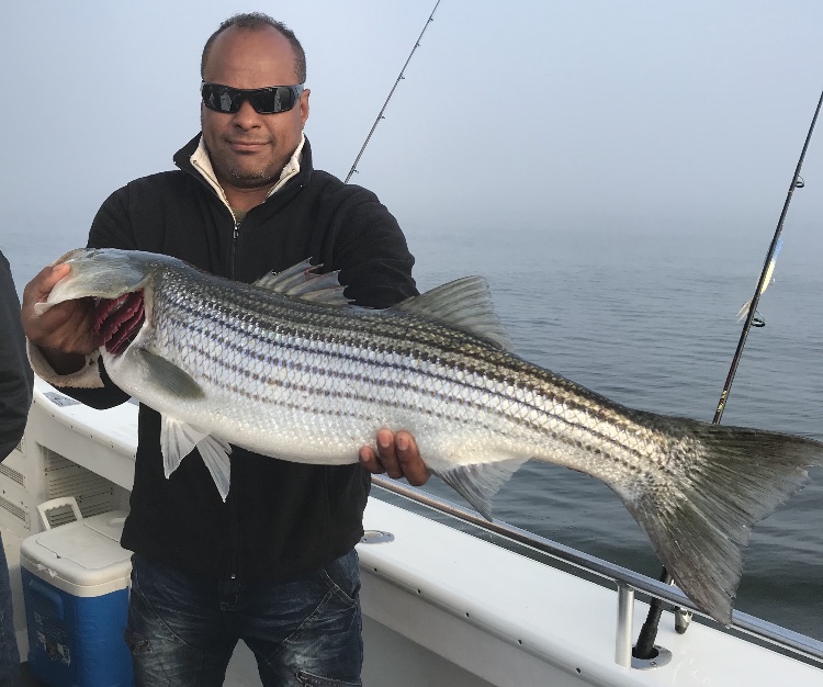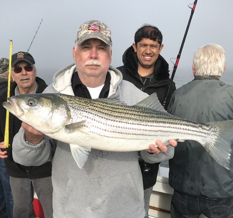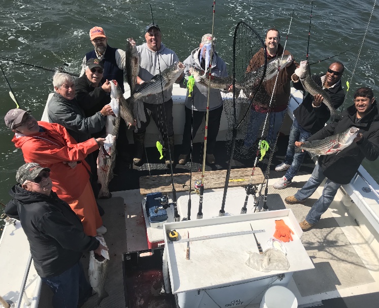 Today aboard the Down Deep we ran another 6 am Raritan Bay Striped Bas trip for a big crowd of new and returning guys. They came, they saw & they beat em up real good. Many more keepers went back to fight another day. The pictures say it all. I'll say BOOK NOW. Thanks everyone for making our trips, sailing with us again and all others who are booking all their 2018 trips going forward at a rapid pace. Don't miss the next open boat trips to fish in comfort, like a gentleman -