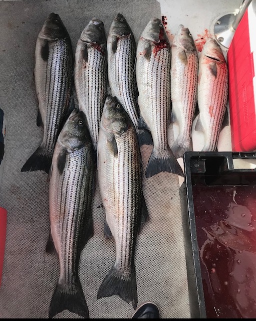 FRIDAY MAY 11 - 6 AM STRIPED BASS - FEW SPOTS REMAIN ***** FRIDAY MAY 11 - 1 PM STRIPED BASS - FEW SPOTS REMAIN ***** SATURDAY MAY 12 - 1 PM STRIPED BASS - FEW SPOTS REMAIN SUNDAY MAY 13 - 6 AM STRIPED BASS - FEW SPOTS REMAIN ***** SUNDAY MAY 13 - 1 PM STRIPED BASS - FEW SPOTS REMAIN CLICK ON DOWN DEEP FOR OUR SCHEDULES DON'T FORGET TO ASK OUR CREWS FOR YOUR TICKET TO WIN FREE TRIPS ABOARD BOTH BOATS. JUST OTHER WAYS WE SHOW OUR THANKS BESIDES SAYING IT ALL BAIT, BASIC TACKLE, ICE, RODS, KEURIG COFFEE & BOTTLED WATER PROVIDED. Come out, load up, book now. Here's a few . . . . .