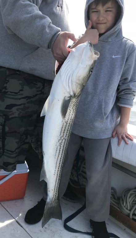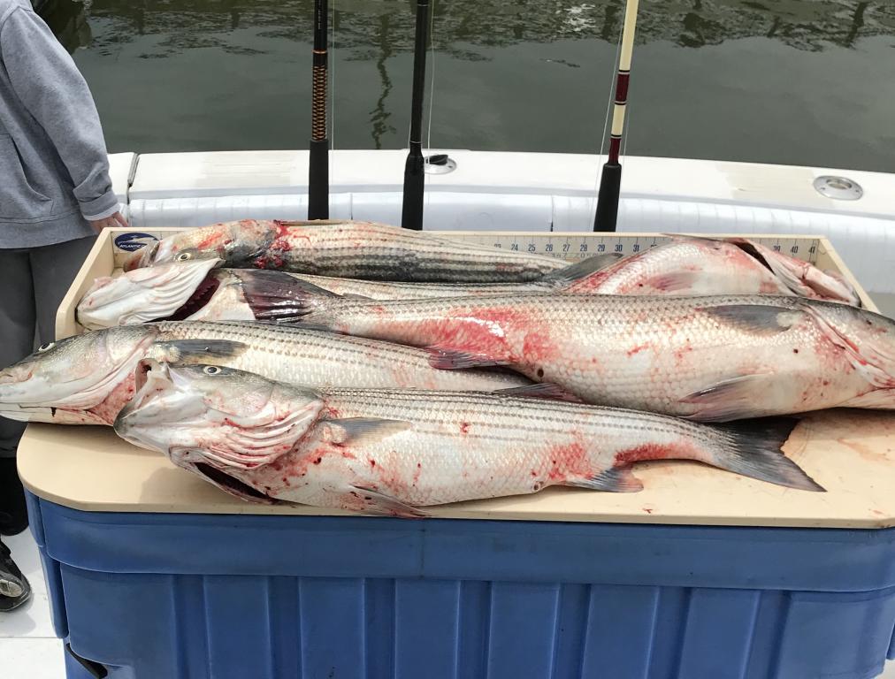 Limits of Striped Bass trolling and bait fishing. Still have availability on Friday, May 18 for open boat. Call to Capt. Dan to reserve your spot 908-915-6416.