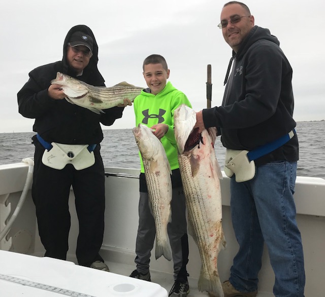 As usual the weather man was wrong and it was great fishing weather with no rain or wind. The striped bass beat down continued today as we boat 10 bass to 28 lbs by 7:35 am. We kept our legal limit and played catch and release.