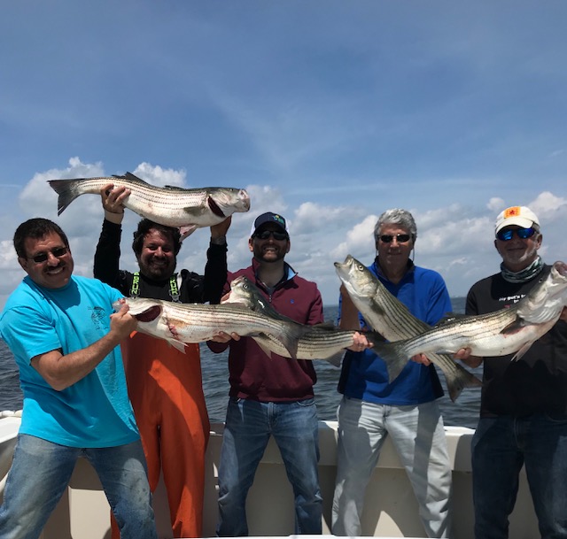 It was another good morning of bass fishing for Dr. Dave, his brother Lee, son Eric , Jerry and crew. All caught keeper bass. For the coming week, we only have Thursday , May 24 available for a Striped Bass Charter and we have two open spots for our Open Boat 1st day of Fluke Season charter. Give us a call if interested.. Best..Capt. Mike