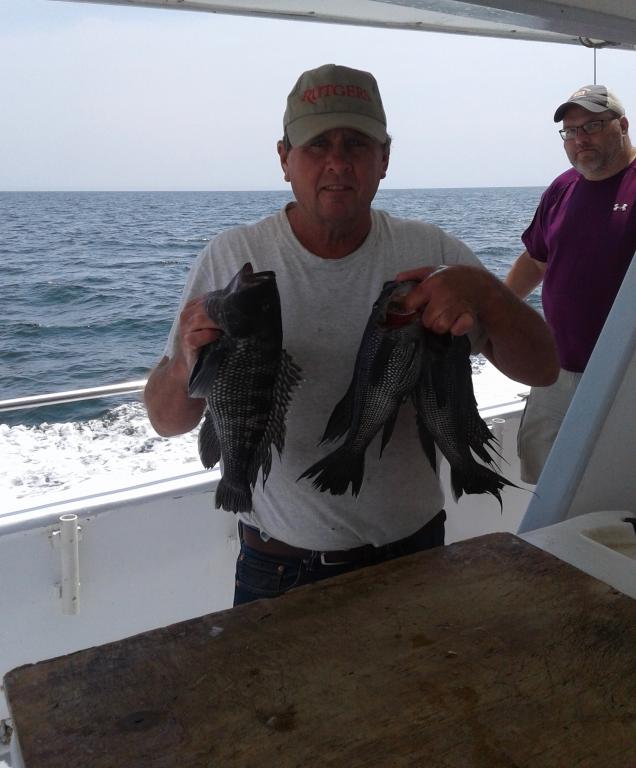 It was perfect weather for fishing today. The ocean was flat and the temperature was comfortable. We started out fishing for BLUES but they did not bite like they did yesterday so we went out and had a lot of fun catching some nice SEA BASS. Everybody on board was very happy with the catch that they had and we did get a few BLUEFISH at the end of the day.
