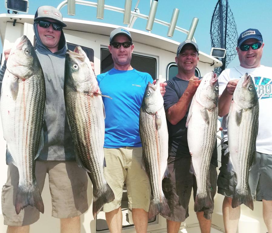 Default Re: Striped bass fishing ON FIRE!!! Tuesday. Early 5 man limit with over 20 releases.