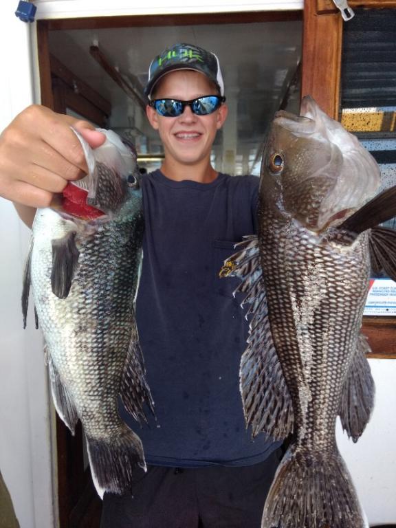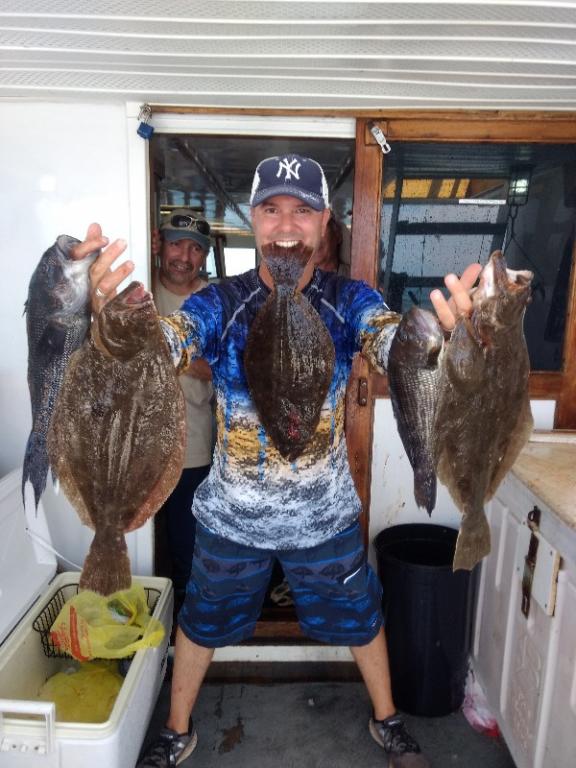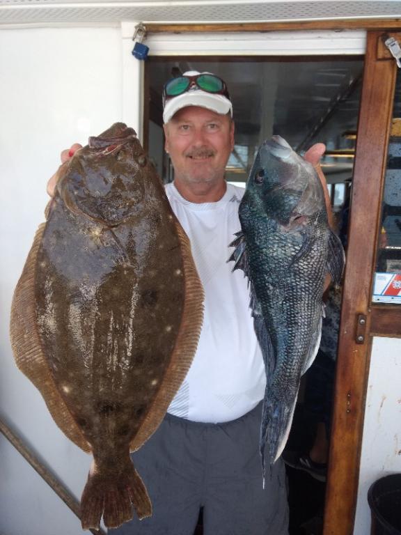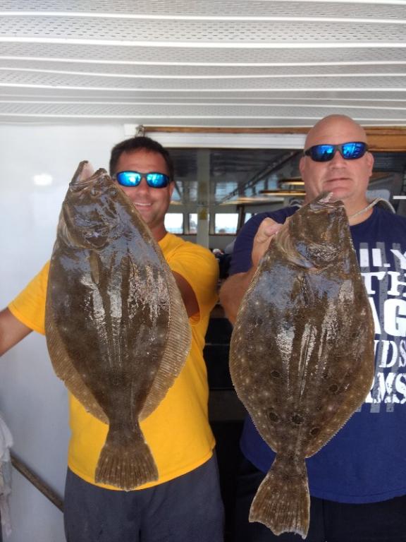 Hey guys. We had another beautiful day on the ocean today with a great bunch of people. Good music, sunshine and lots of quality Fluke and Sea Bass to top it off. Vinny Garaci and a couple others had a limit of Fluke and Sea Bass. Richie from Belmar took today's pool with a nice Fluke. We are just enjoying the summer and the sunshine and good fishin'. We hope you can join us for a nice day on the water. We sail everyday from 7 30 AM to 2 30 PM. The boats always lit up and ready to board by 5-515AM!