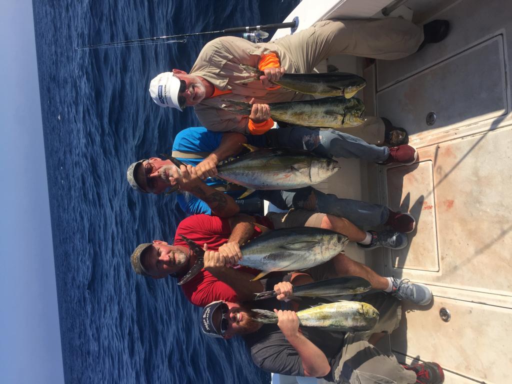 The grounds and landed right on the life pulled the Hooks on the first 2 fish and fought a big yellow on Light leader until it parted near the boat, very slow bite rest of morning, after lunch we went searching and Found some debris with mahi Landing half a dozen. Went back to Tunas and worked whales/dolphins with Poppers no luck, went back to fishing the rays/chick birds And busted off 2 more fish, ugh! Finally landed 2 yellows Some falsies and skippies to end the day.