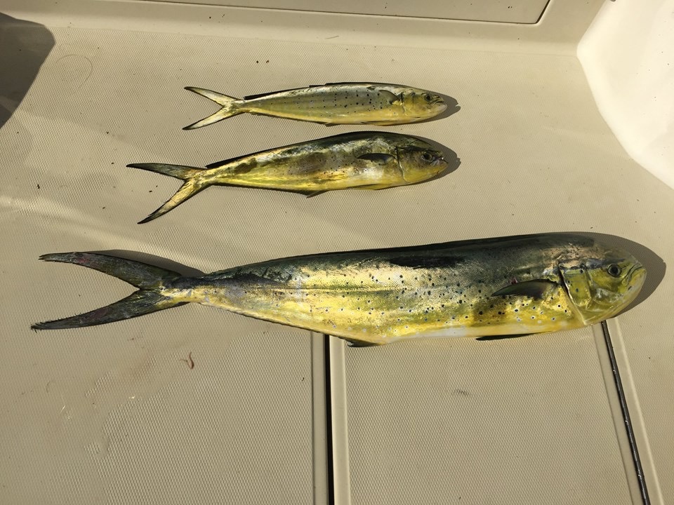 Pot hopped around in the north western edge for a while, water was not that great but a lot of pots around so figured we give it a shot but no takers. Steamed a few miles south, water got much better but still no takers pot hopping so we decided to stream down to the southern part of the Monster Ledge and work our way north.... No pots in the area so we put out the spread and trolled north on the eastern edge for an hour with nothing... Was starting to get discouraged so we picked up the lines, steamed north and and west to the west side and trolled in and around the pots along the western edge working our way towards home. We had 2 chickens that hit jets and one nice gaffer around 36 inches that hit the way way back bird followed by a green machine. Not a great trip but at least we didn’t get skunked.