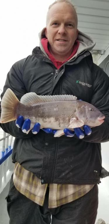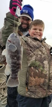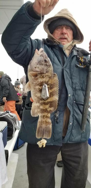 December 9th blackfish report. Hey gang, very slow day today, a handful of keepers togs with the short action moved around. We tried some different areas offshore but no good. Tomorrow Monday December 10th it's gonna blow North 25 so we will not be sailing. Our next trip will be Tuesday December 11th. We also put Captain Al's ashes on one of his favorite drops at the end of the day. God-bless him. Thanks Captain Scott.