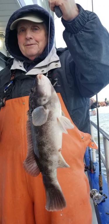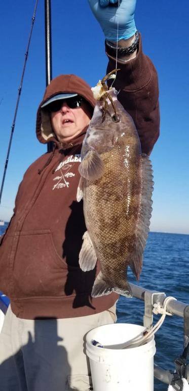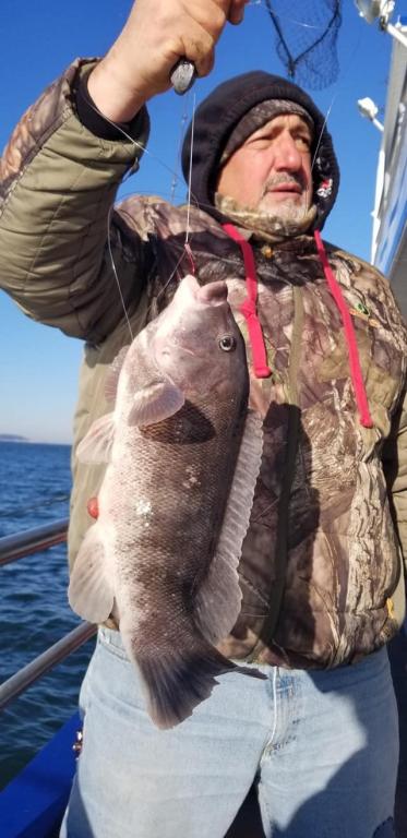 Blackfish Report Tuesday December 19th. Hey gang we were out today with a decent amount of regulars. Bucktail Bob was Hi hook with 3 nice keeper tog today. Several guys on the boat with 2 keepers some just 1 alot of 13 and 14inch Blackfish released. We'll be sailing tomorrow December 20th for sure.. Friday and Saturday will not be good weather-wise so come tomorrow. Thanks Captain Scott