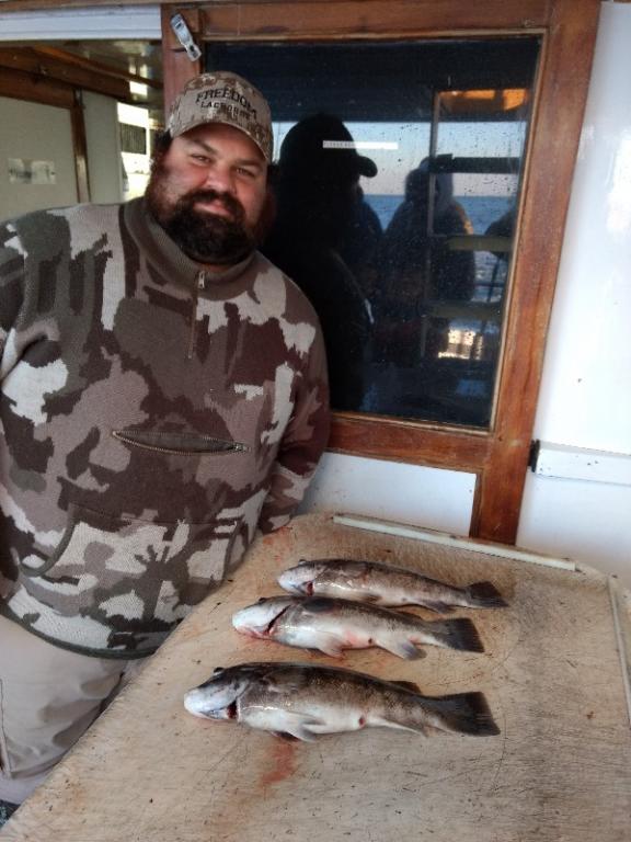 Hey guys! Good chew all around the boat today. We had a few guys with limits and most went home with dinner. Good fishing,great people and beautiful weather. Jimmy the watchman took the big money today with a 7.2 lb. Blackfish. We are sailing tomorrow Christmas Eve from 7AM - 2PM. If we don't see you before hand have a Merry Christmas!