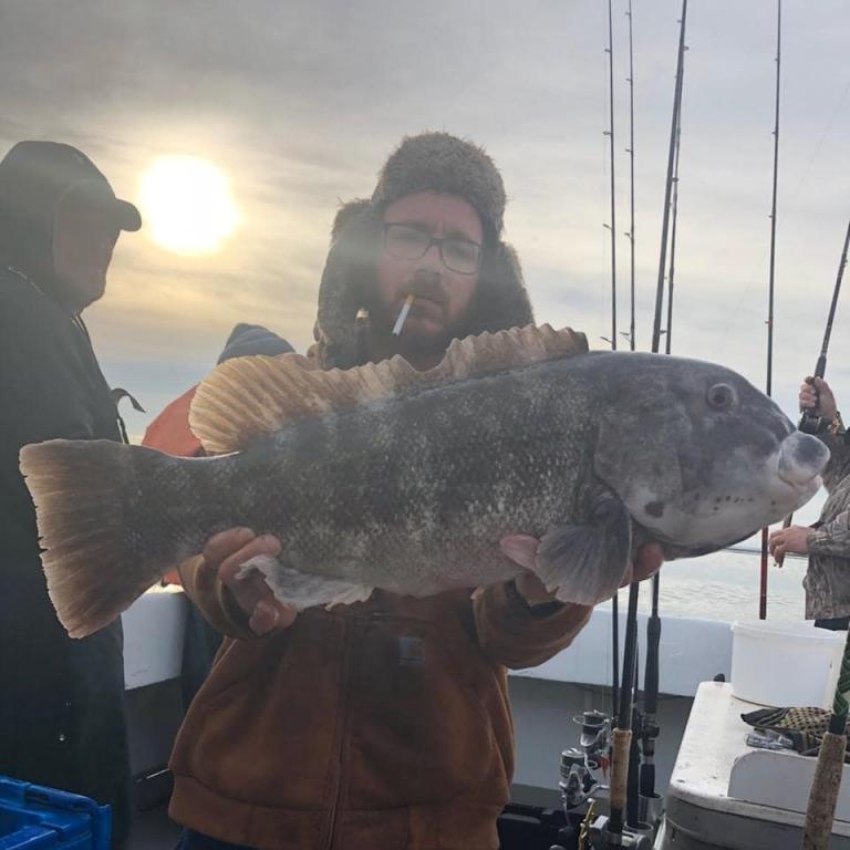 Did some togging on the Monger yesterday. I had about 25 foul balls & 4 keepers, also missed about 20 bites I would sell my soul to have back. Highlights were watching Directa suck as usual & 10yr old Noah crushing it & swinging on Togs like a champ! CJFF also landed a 15lb through the window Few guys were orl lots of 3-6lb fish & a few 7 & 8s. Also tried to release the 15lb but she would not go down. Thanks again to Stelios for the invite 44k for the trip with majority being roasters. We tried releasing the 15lb but she would not go down.....(giggity). Next trip the Njfishing Mahithon on the 30th should be interesting....................................... ............................................