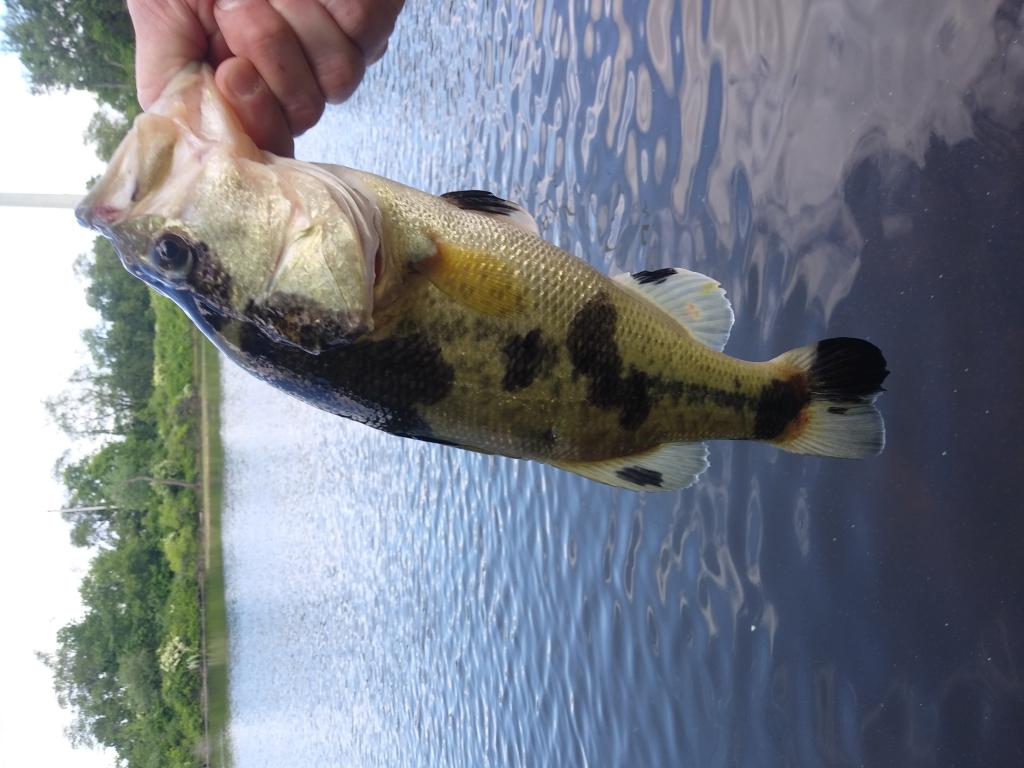 Hey guys, long time lurker here. I had off from work today and hit up a small retention pond because the wind was so bad on the large pond in town. The retention pond is under heavy power lines. I guess it is true what they say about living under power lines. I've never seen a bass with this pattern. I wasn't sure what it was when I first saw it in the water.