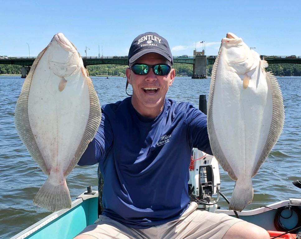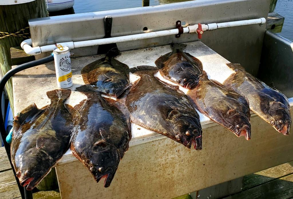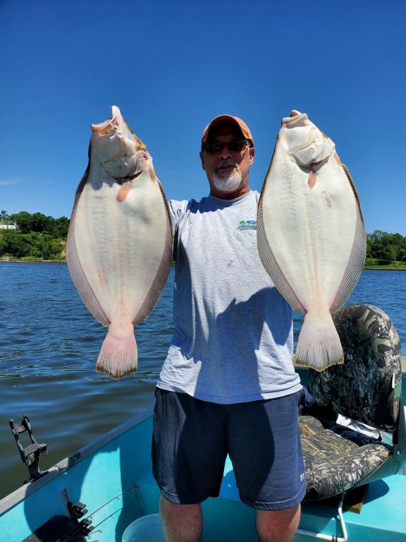 Sunday.......PERFECT CONDITIONS ..... Had to fish quick as I only had a two hour window. Had the perfect tide timing and wind giving us optimal conditions to catch the Summer Flundies. We only kept 4 but had the action the whole time and left them biting. My turn for the pool fish at 22 inches also on the WR...