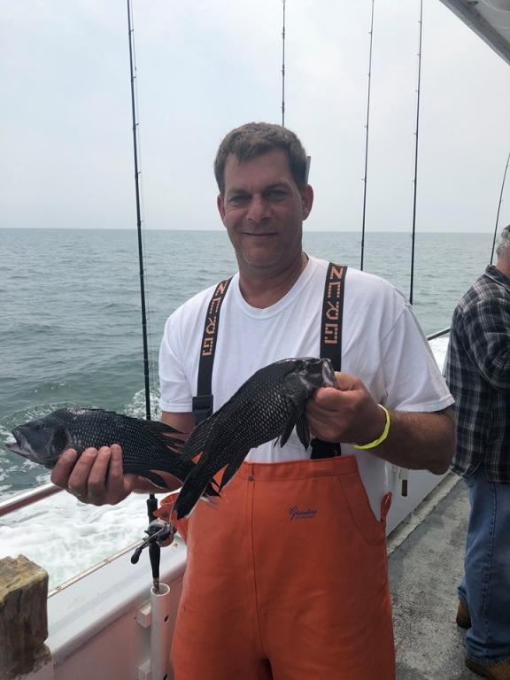 We caught some BLUES but it wasn’t really good enough so we spent quite a bit of time on the SEA BASS grounds. We had quite a few very nice SEA BASS, some LING, a few BOSTON MACKEREL and we did have some nice size WHITING which is a fish that we haven’t seen in a while. So all in all it was a pretty good day.